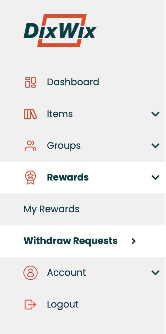 Return to the rewards menu in the left sidebar and select withdraw requests